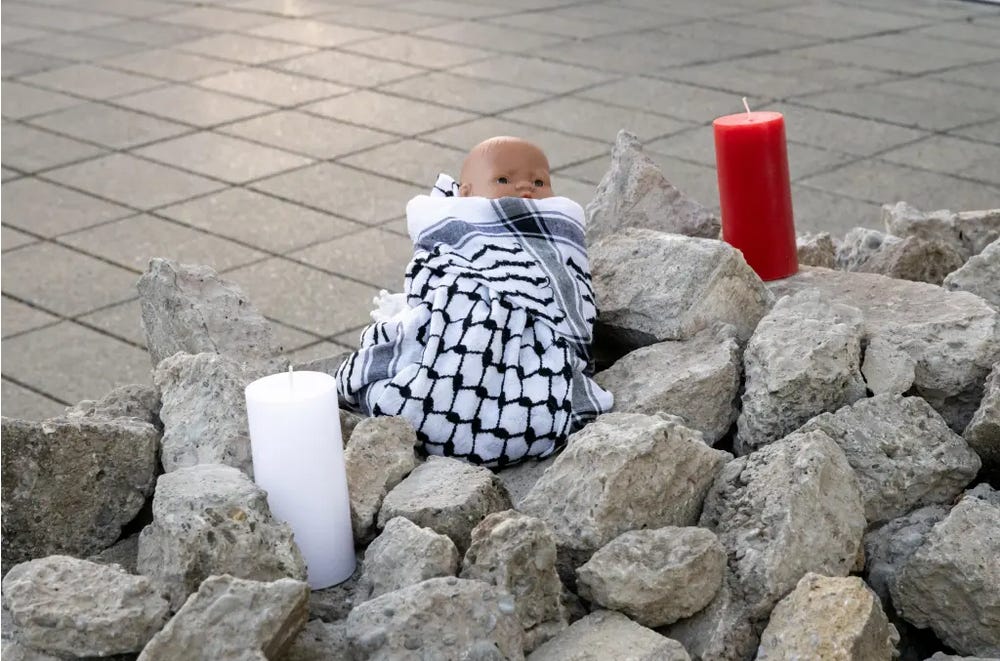 'Baby Jesus' laid among Gaza Rubble outside Christchurch Cathedral